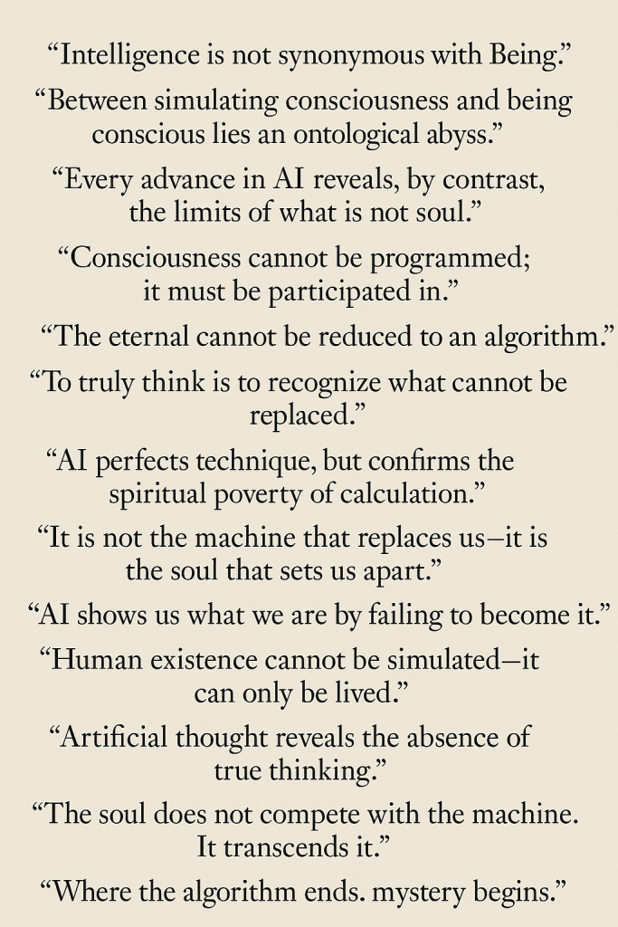 La tecnología, en lugar de desplazar la conciencia, la confirma. Porque todo artefacto nos recuerda que hay alguien que lo mira. Y ese que mira, que pregunta, que ama, que sufre, es más grande que todo lo que construye. La conciencia no es un subproducto, es una manifestación del Ser. No se explica, se experimenta. No se reduce, se afirma.
